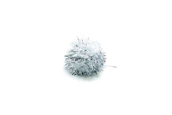 Glitter Pom Pom 30Mm 16Pcs White / Silver
