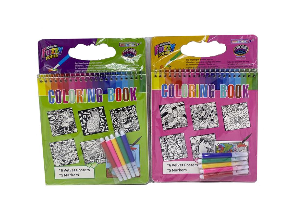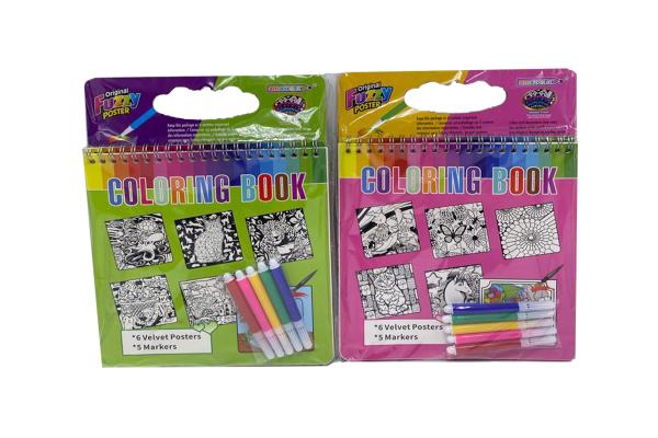 Coloring Velvet Picture Book 6 Sheets + 5 Watercolor Pen