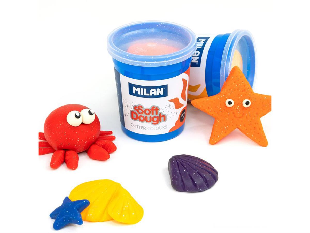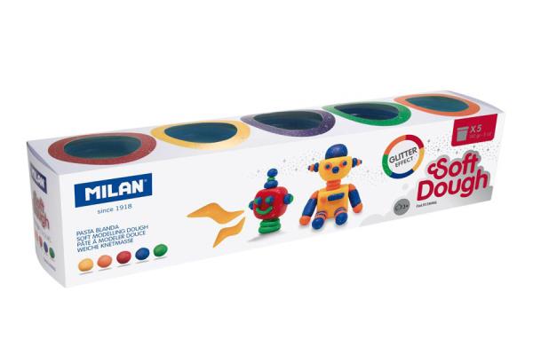 Milan Soft Dough Case Of 5 Pots 142G 5 OZ Glitter Colors