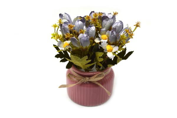 RYN Artificial Flower With Ceramic Pot Tulip Assorted