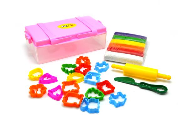 Kid Art Modeling Clay 510gr 6 Colors 16 Molds +1 Knife And Roller In Plastic Box