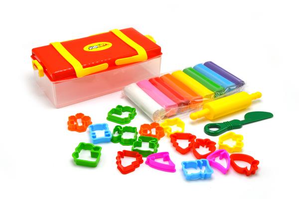 Kid Art Modeling Clay 560gr 8 Colors 16 Molds +1 Knife And Roller In Plastic Box