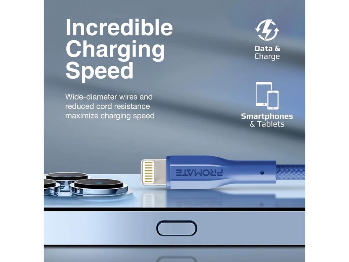 Promate High Tensile Strength Data & Charge Cable Navy 1.0M For Apple Devices