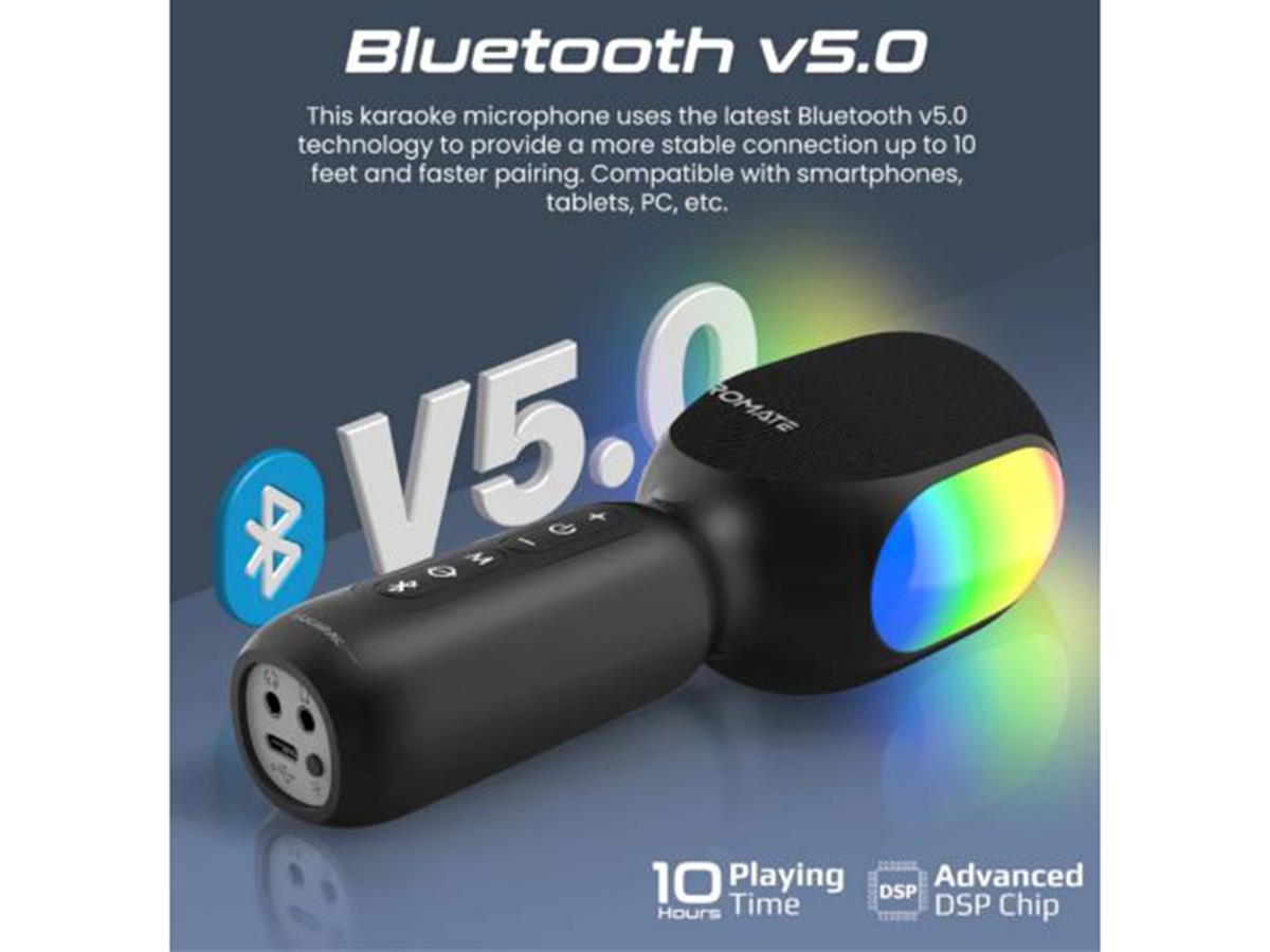 Promate 5 In 1 Wireless Karaoke Microphone & Speaker With Dynamic RGB Lights