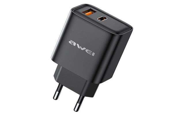 Awei Power Adapter Dual Output Fast Charging Black #PD81-EU-Black