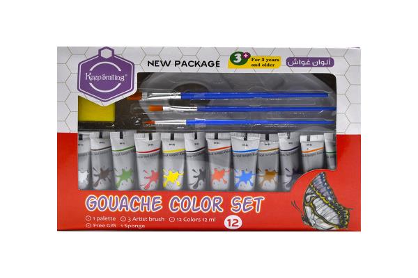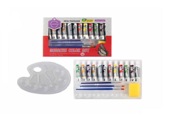 Gouache Color Paint Set 12ml*12 Colors + 3 Brushes + Sponge + Palette