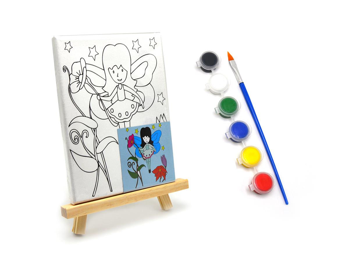 Printed Canvas 15*20cm With Chevalet And 6 Acrylic Paint + 1 Brush