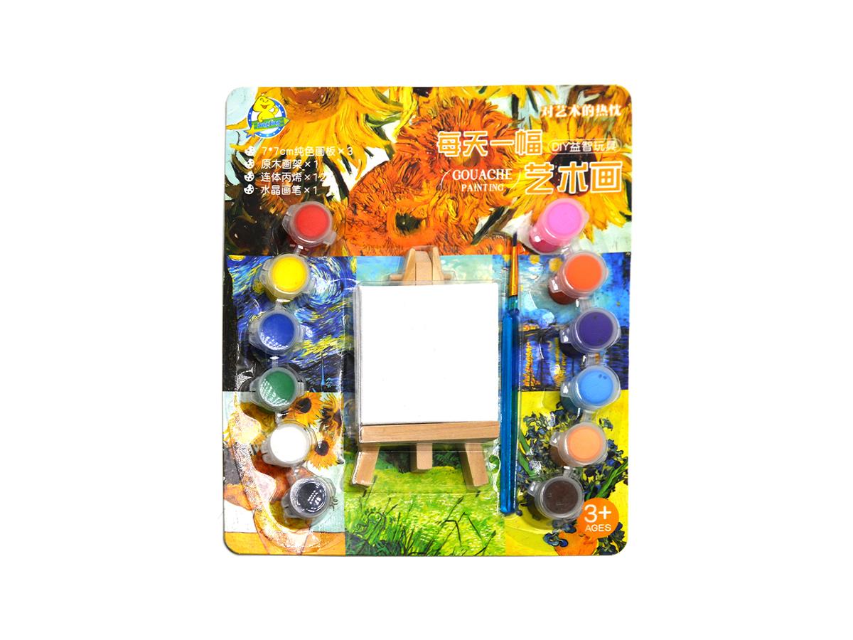 RYN Canvas MDF Frame 7*7cm With Chevalet And 12 Acrylic Paint + 1 Brush