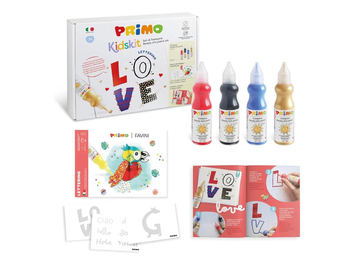Primo Painting Kidskit Gouache Tempera 4 Bottles 50ml W/Sketchbook & Creative Book Lettering